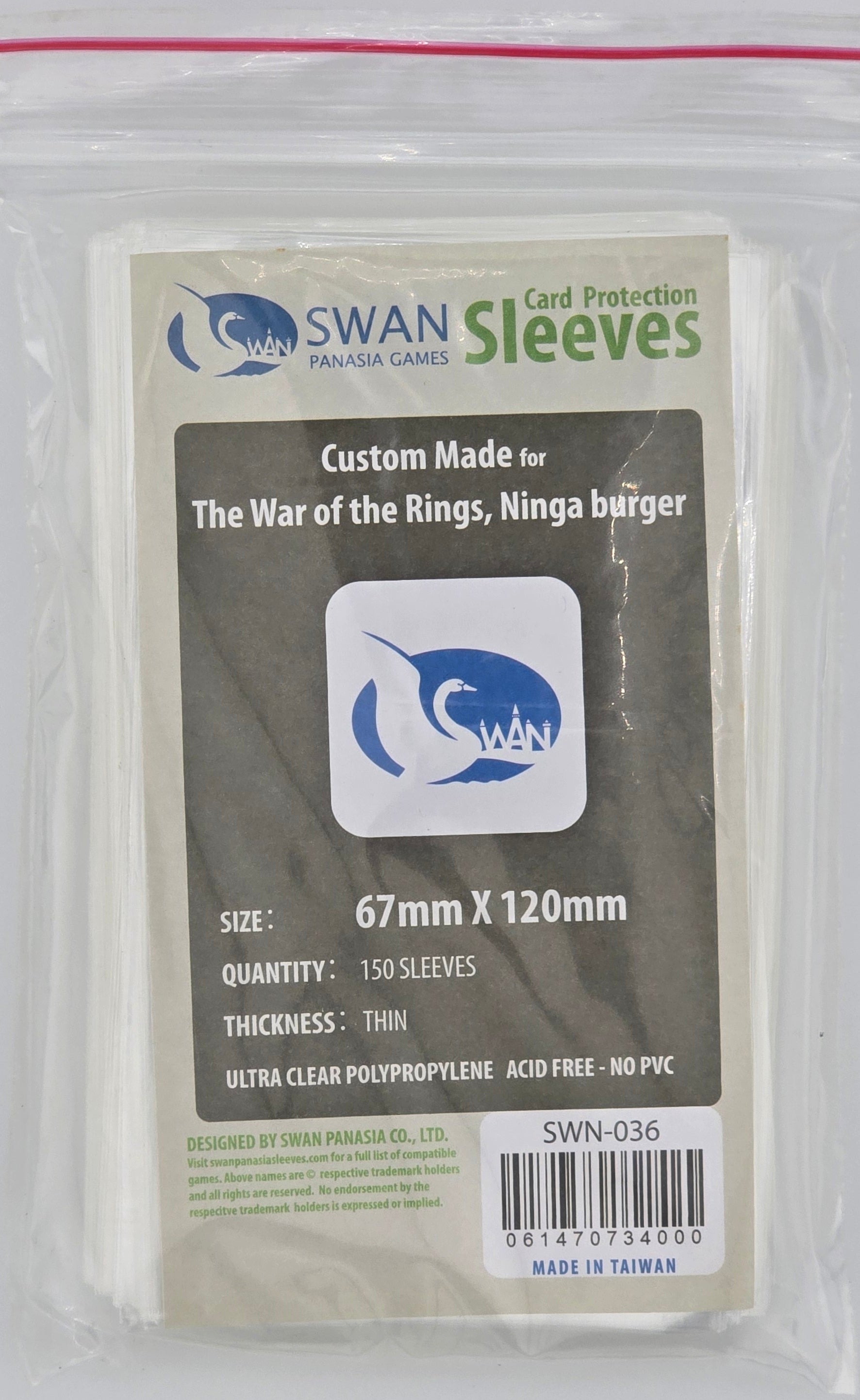 45x70mm -120 pack, MediumThickness Sleeves (SWN-202) This is the amazingly popular Swan PanAsia Sleeves, finally available in the USA! You are getting product code SWN-202. These Mini Euro sleeves are Swan Card Sleeves (45 x 70mm) - 120 Pack, Medium Thickness Sleeves. Note these sleeves are "Medium Thickness" so 50 microns thick and made from Ca...